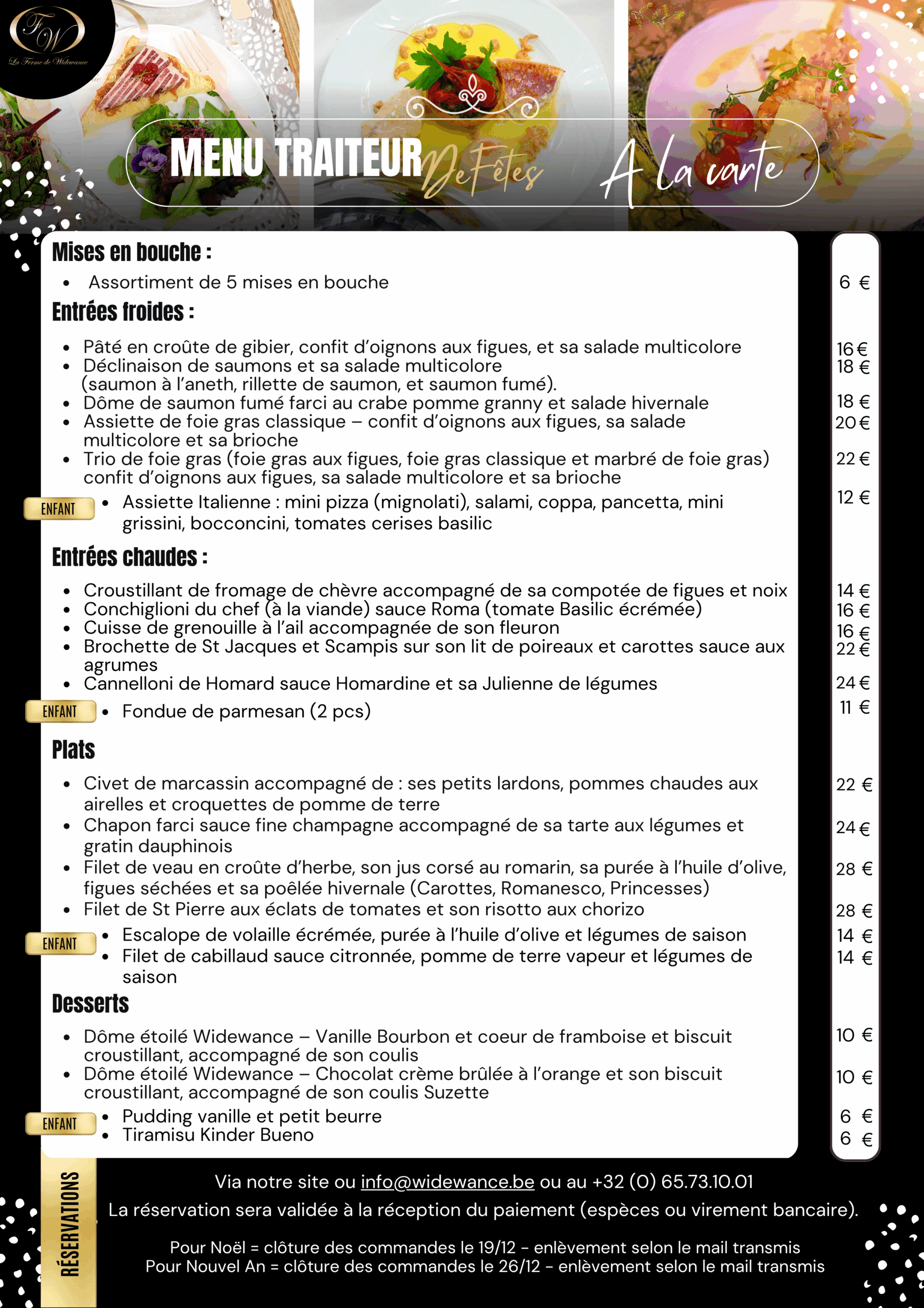 Dessert * Dôme étoile Widewance – Chocolat crème brûlée à l’orange et son biscuit croustillant, accompagné de son coulis Suzette - 10,00 € 0 1 2 3 4 5 6 7 8 9 10 11 12 13 14 15 16 17 18 19 20